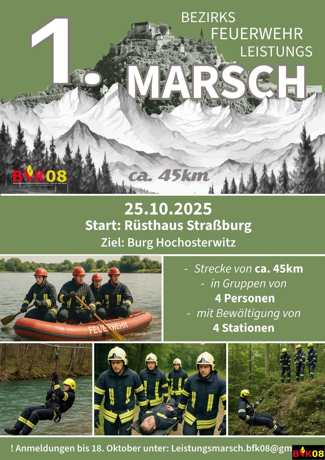 Am Samstag, den 25. Oktober 2025, findet erstmals im Bezirk St. Veit an der Glan ein besonderes Ereignis statt: der 1. Bezirks-Feuerwehr-Leistungsmarsch (BFLM).