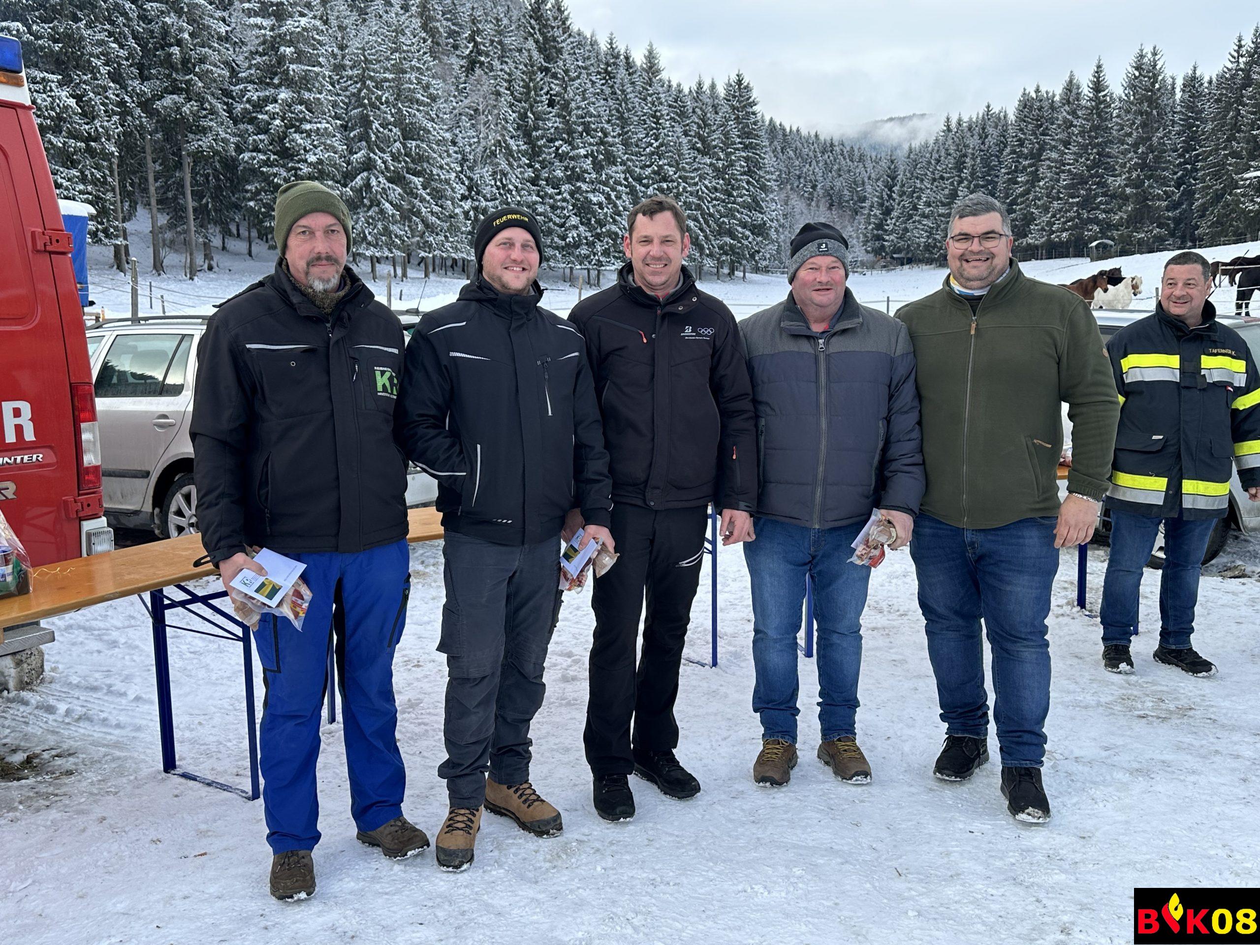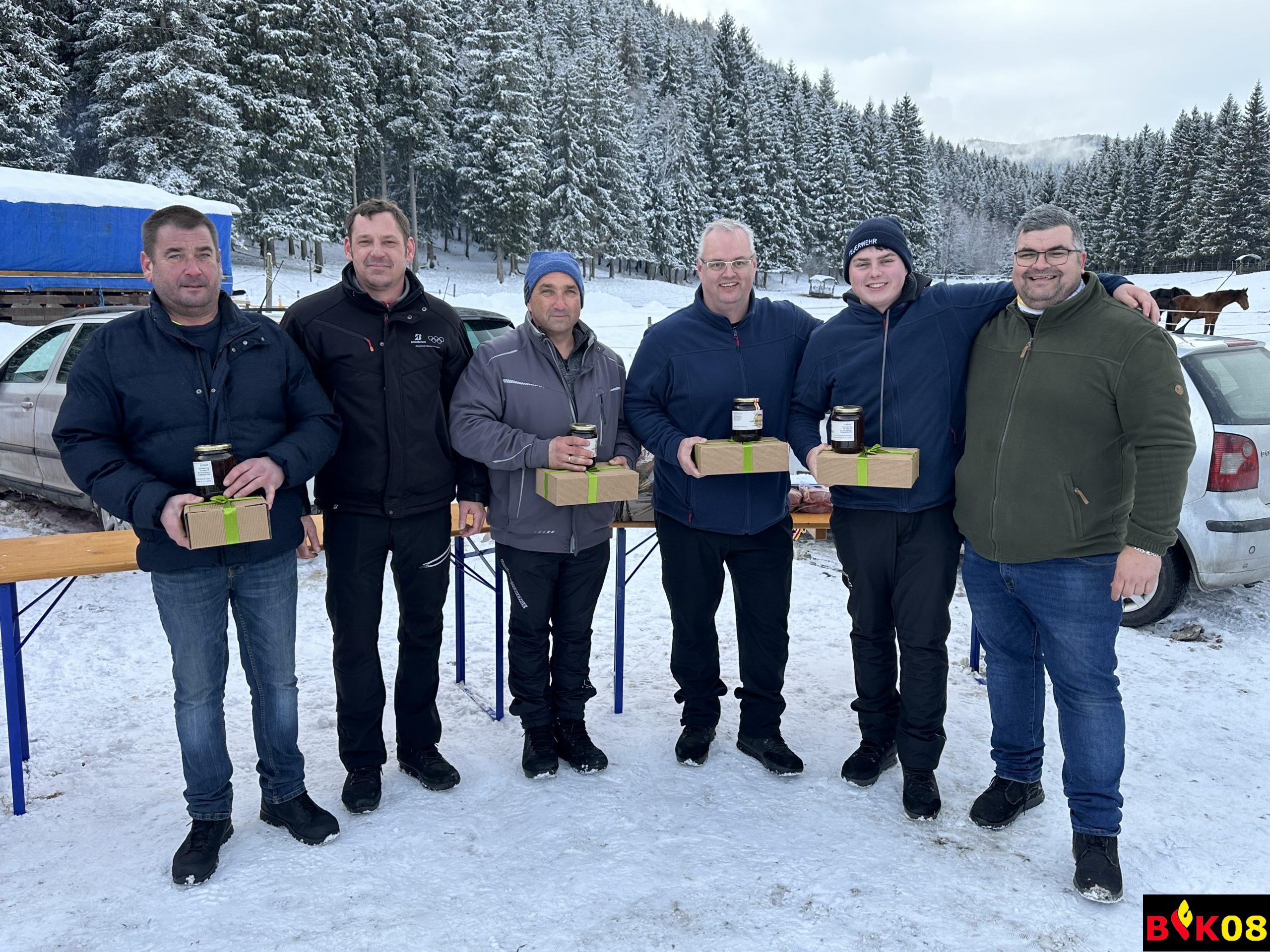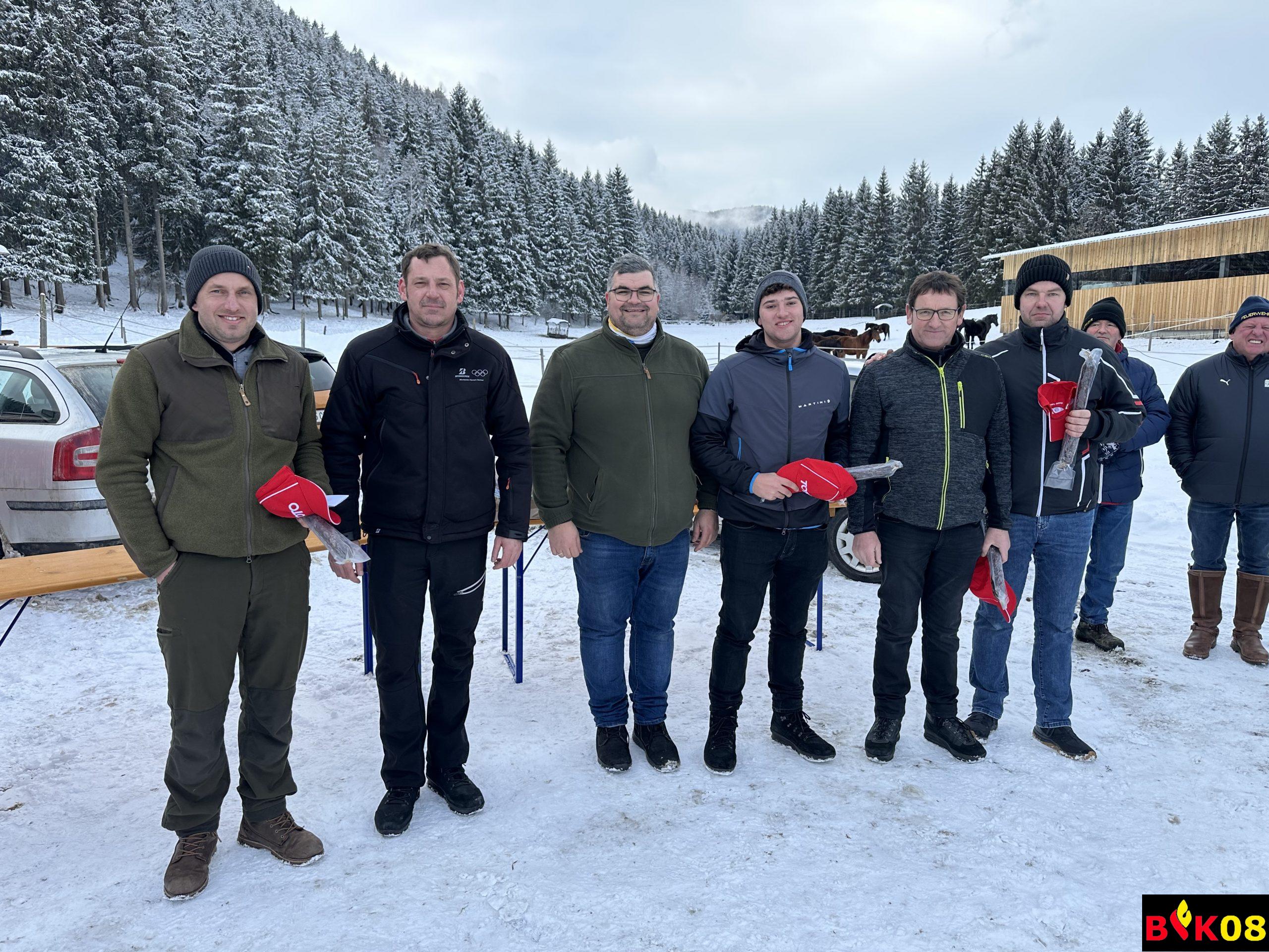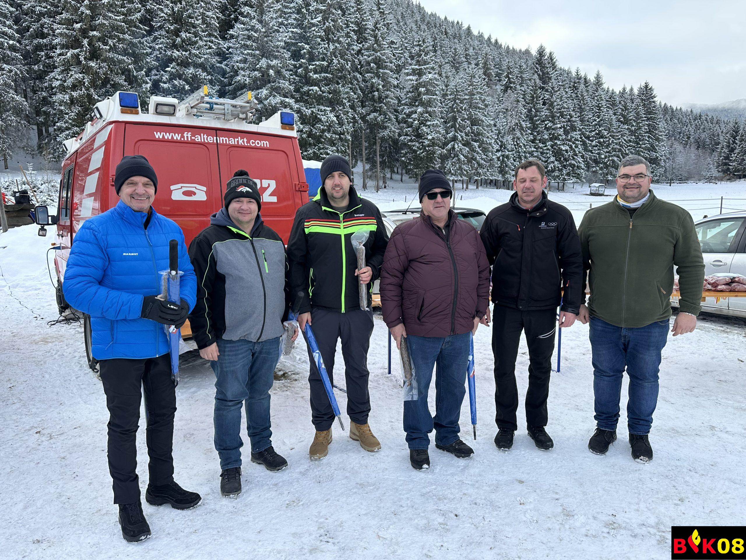 AFK ABI Stefan FRIESER, AFK-Stv. HBI Georg HOLZER sowie der Glödnitzer Bürgermeister Hans FUGGER bedankten sich bei der FF Altenmarkt für die diesjährige Durchführung des Abschnittseisschusses, bei der Familie Starzacher für das zur Verfügung stellen des Areals sowie bei Stefan Reinhard FRIEßER für seine Funktion als Schiedsrichter.