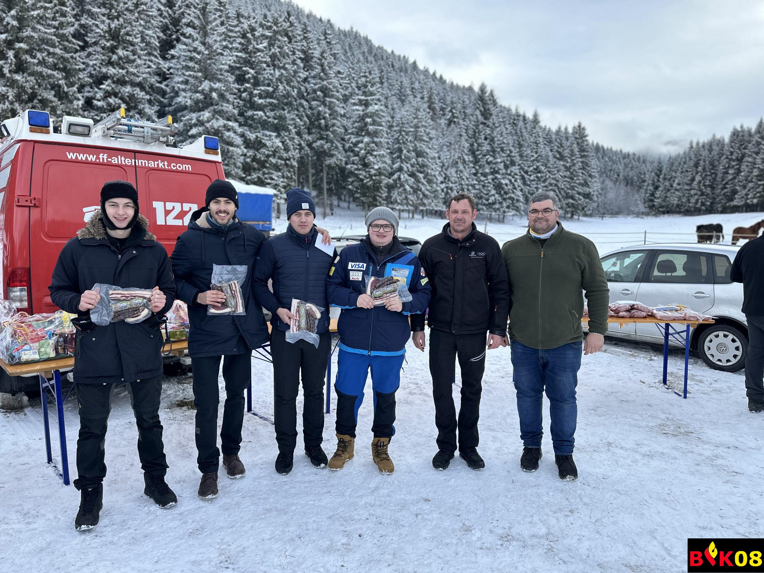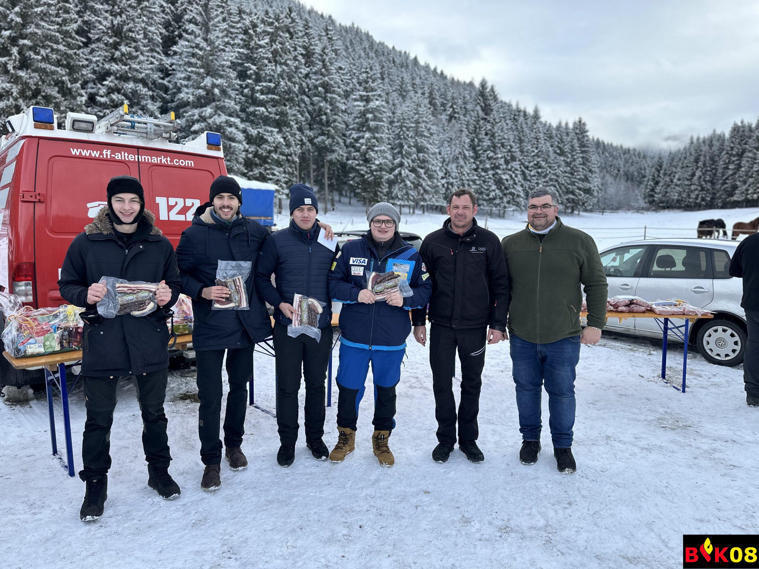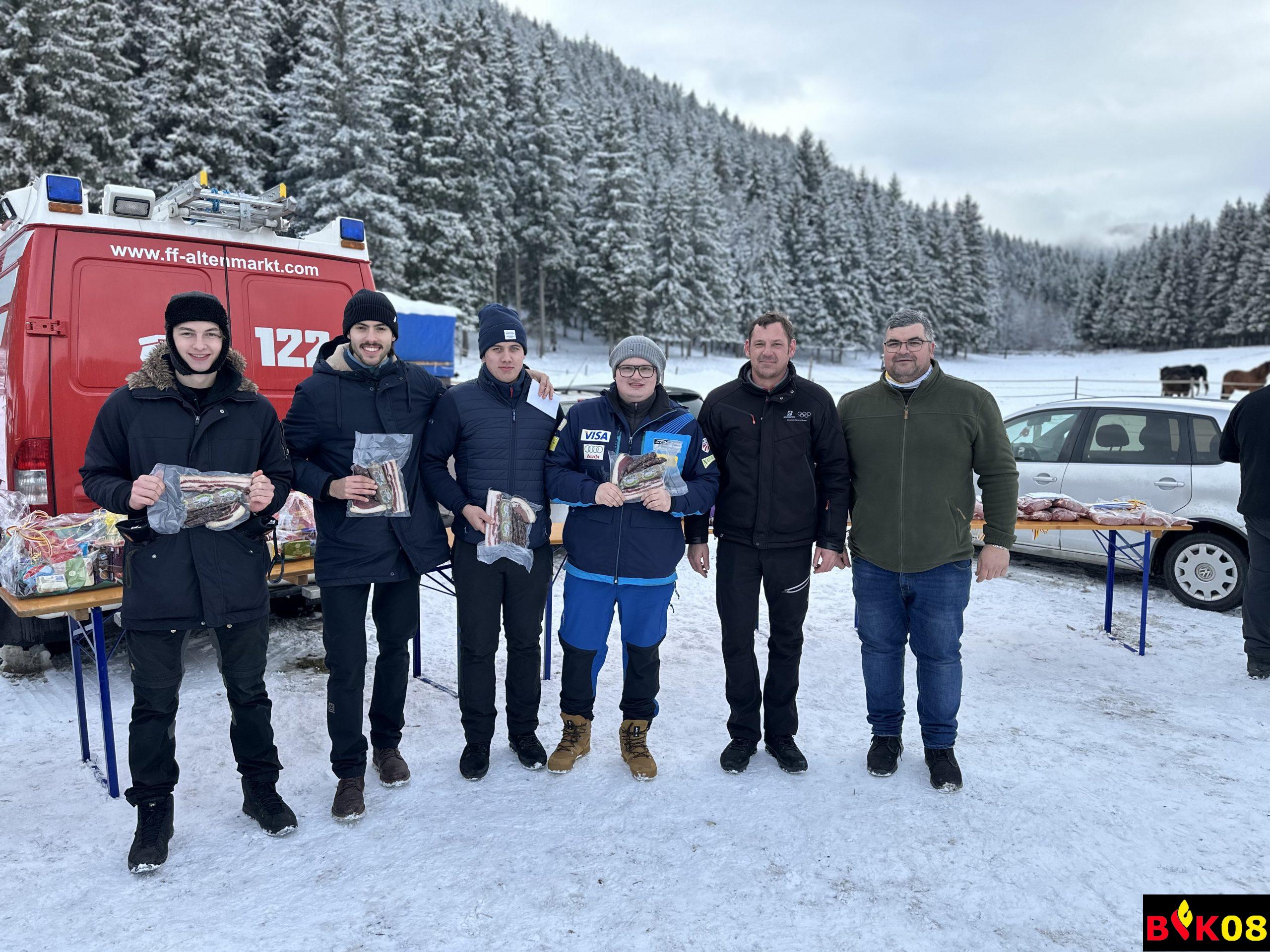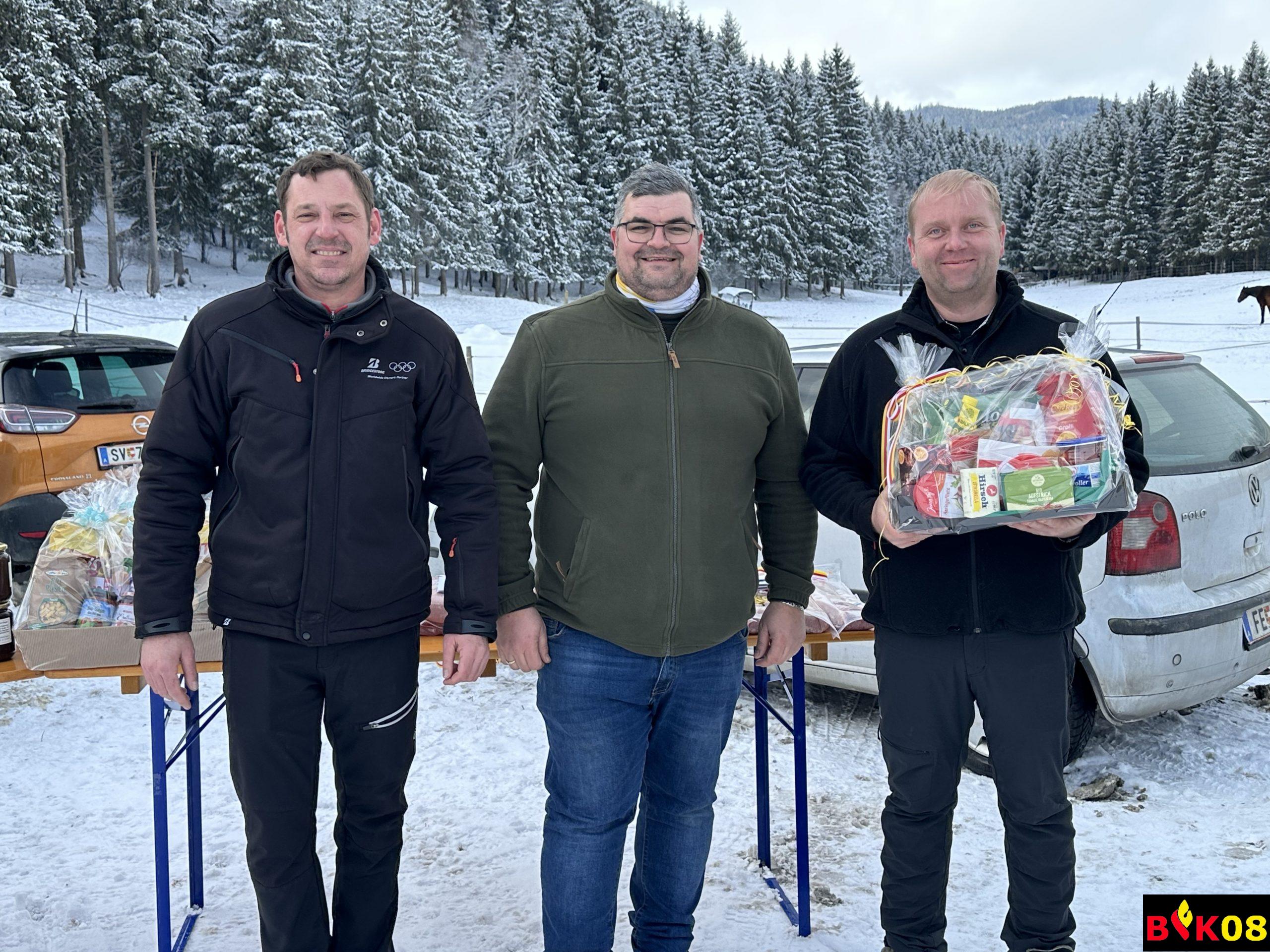 AFK ABI Stefan FRIESER, AFK-Stv. HBI Georg HOLZER sowie der Glödnitzer Bürgermeister Hans FUGGER bedankten sich bei der FF Altenmarkt für die diesjährige Durchführung des Abschnittseisschusses, bei der Familie Starzacher für das zur Verfügung stellen des Areals sowie bei Stefan Reinhard FRIEßER für seine Funktion als Schiedsrichter.