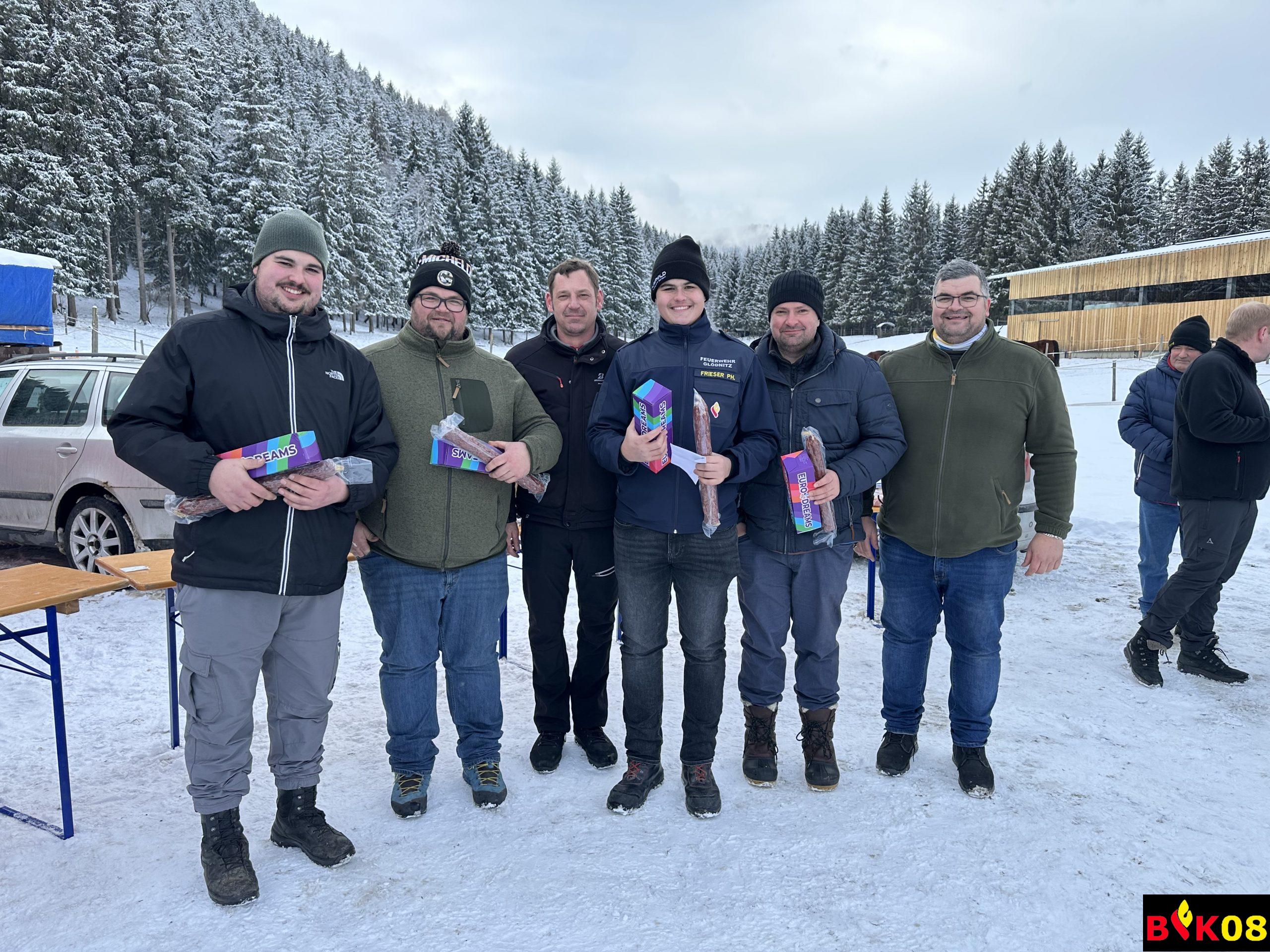 Am Samstag, dem 10. Jänner 2026 fand am Reiterhof der Familie Starzacher in Glödnitz der diesjährige Abschnittseisschuss der Feuerwehren des Abschnittes Gurktal statt. Ausgerichtet wurde dieses von den Kameradinnen und Kameraden der FF Altenmarkt unter Kommandant HBI Georg HOLZER und Kommandant-Stellvertreter BI Hans KREUZER. Insgesamt 12 Moarschaften der unterschiedlichen Wehren kämpften um den begehrten Titel des Abschnittsmeisters. Nachdem sich im Vorjahr die FF Winklern-Hausdorf den Titel sichern konnte durften AFK ABI Stefan FRIESER und AFK-Stv. HBI Georg HOLZER einen neuen Titelträger krönen. Die Moarschaft der FF Pisweg konnte sich vor der FF St. Georgen und der FF Altenmarkt 2 durchsetzen und den Abschnittsmeistertitel sichern. Zusätzlich führte die FF Altenmarkt auch ein kleines Schätzspiel durch, wo da Durchschnittsalter der FF Altenmarkt in Tagen geschätzt werden musste. Hier holte sich LM Paul RAINER (FF Glödnitz) mit seinem Tipp den Sieg.