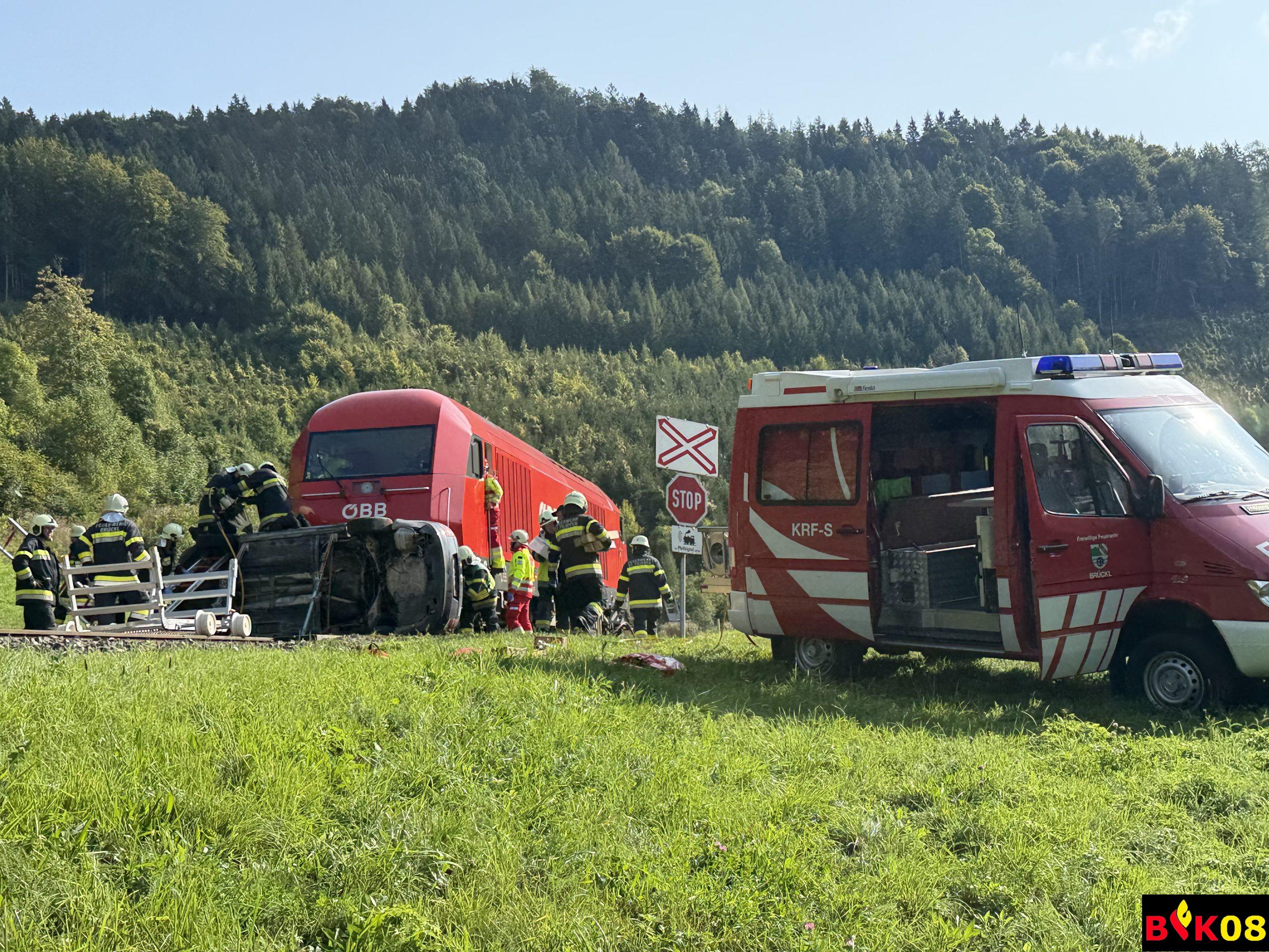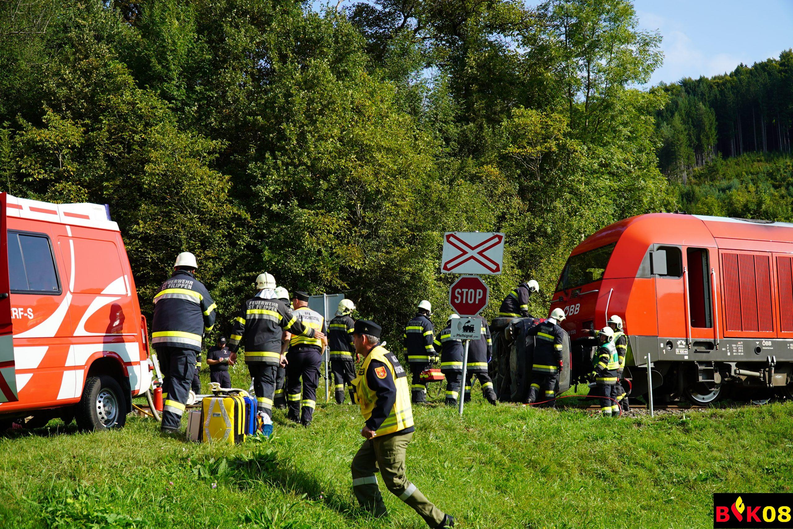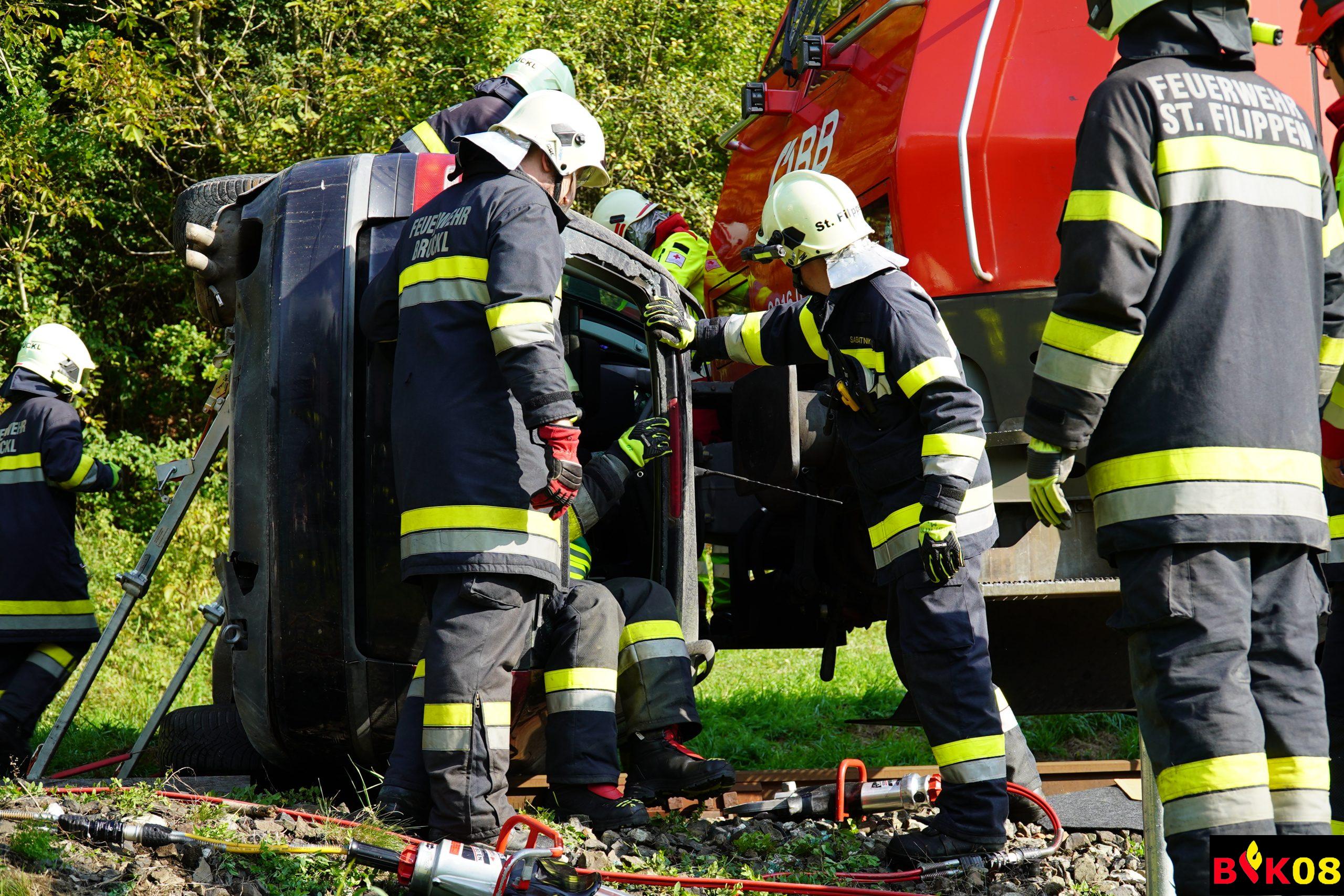 • Verkehrsunfall ÖBB-Triebfahrzeug vs. PKW mit eingeklemmten Personen