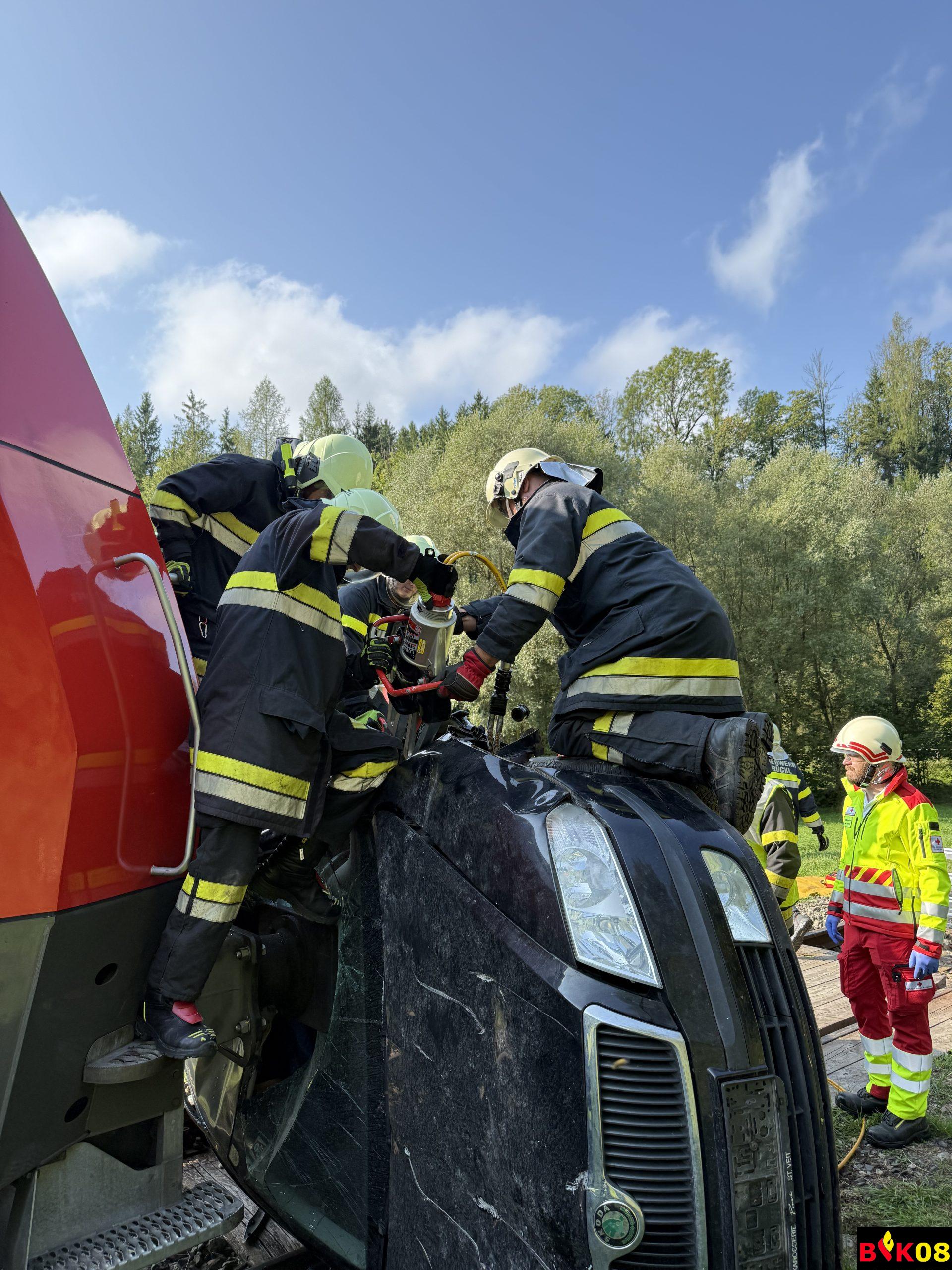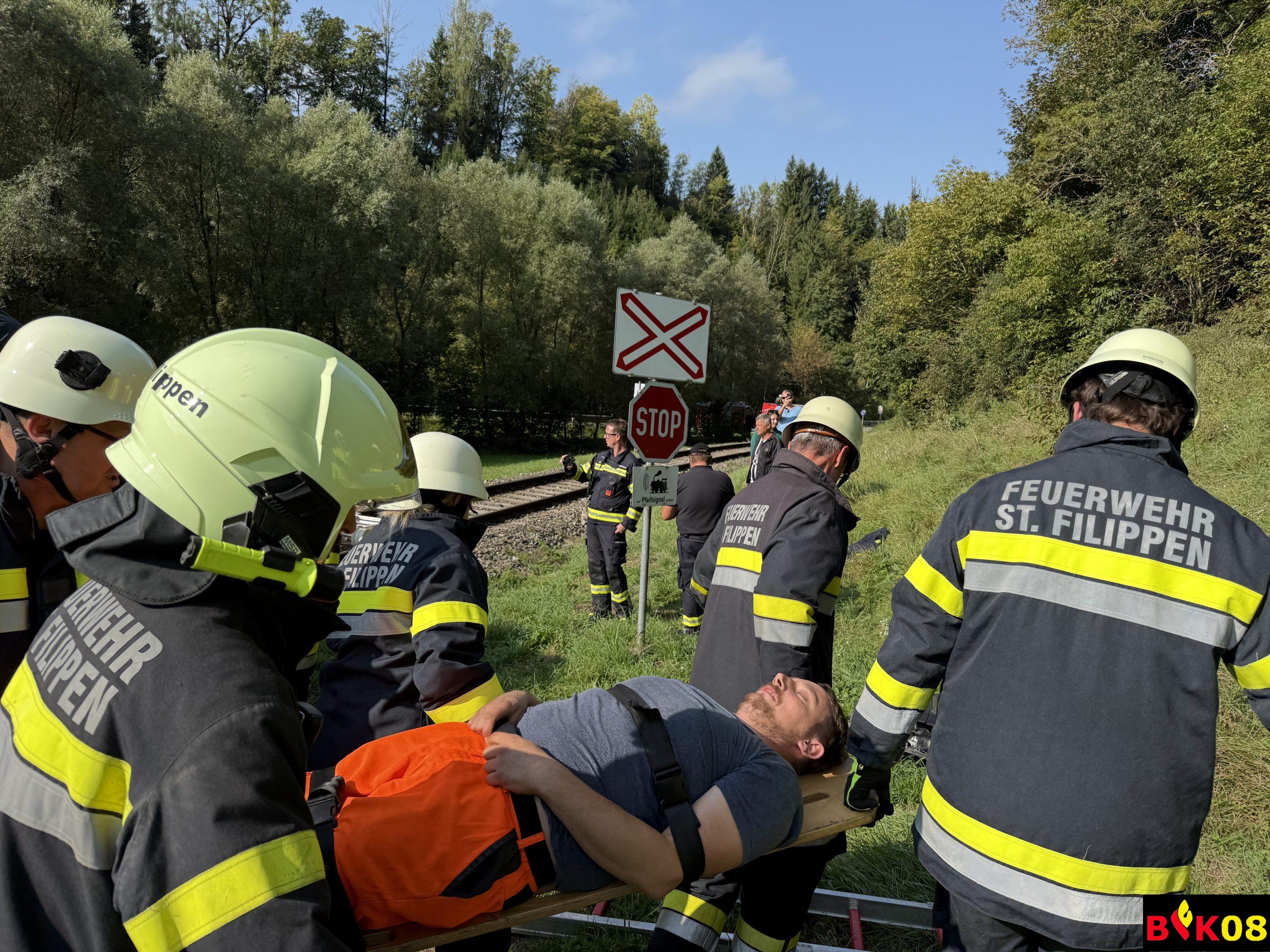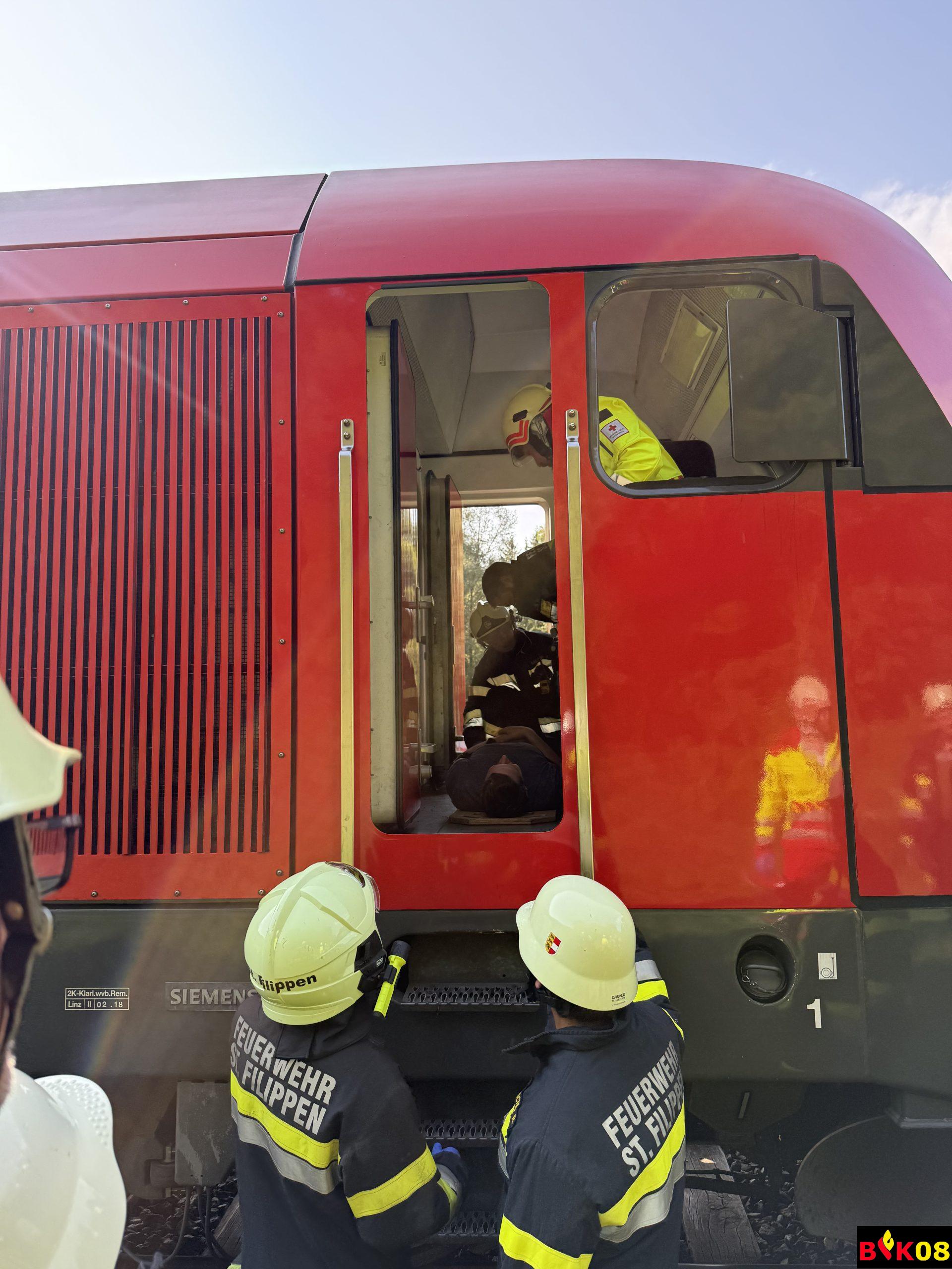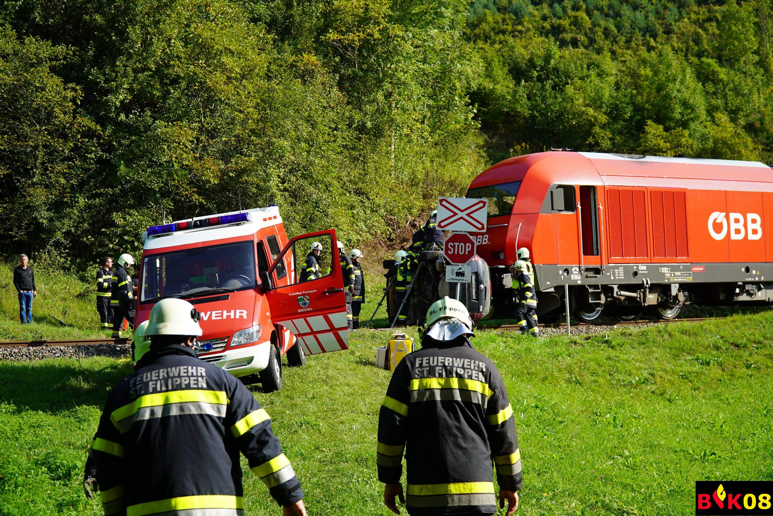 • Verkehrsunfall ÖBB-Triebfahrzeug vs. PKW mit eingeklemmten Personen