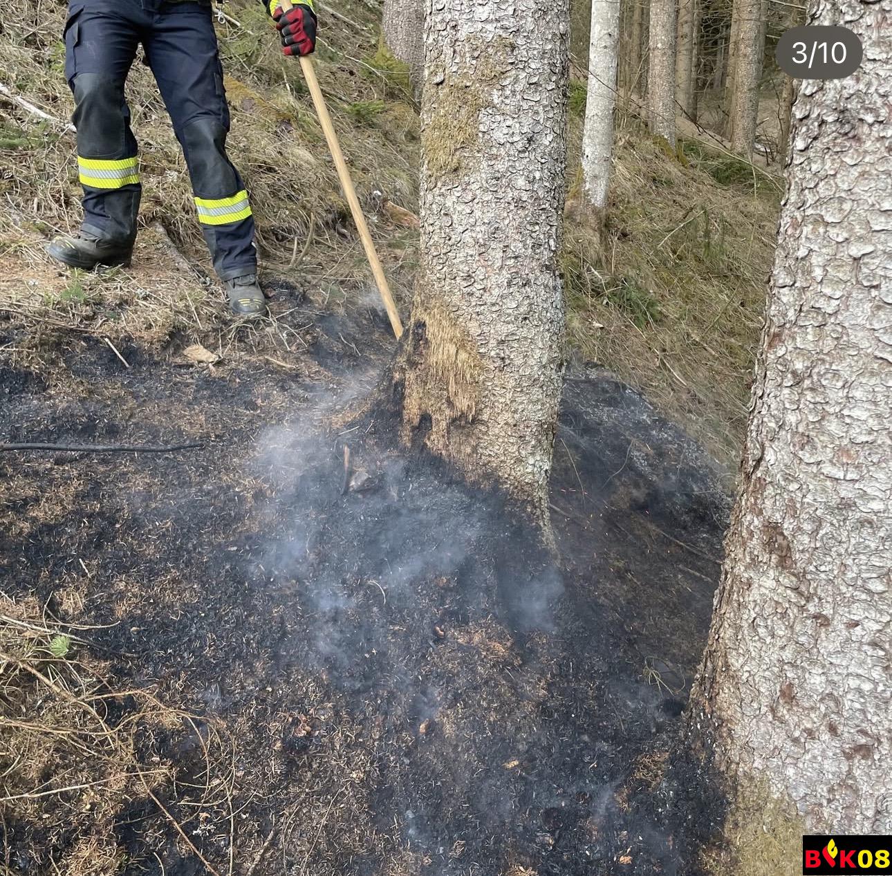 Mittels Schanzwerkzeug wurden ca. 20 Quadratmeter umgegraben und Glutnester nachgelöscht. Abschließend wurde das betroffene Gebiet mit der Wärmebildkamera kontrolliert.