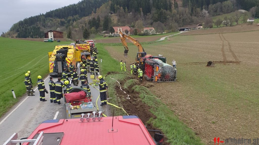 In den heutigen frühen Morgenstunden kam bei Althofen ein LKW aus unbekannter Ursache von der Töscheldorfer Straße (L82a) ab. Der Sattelzug rutsche über eine Böschung und blieb seitlich im angrenzenden Acker liegen. Um 07.00 Uhr wurden die Feuerwehren Althofen, Meiselding und Micheldorf mit Sirene alarmiert. Beim Eintreffen der Einsatzkräfte hatte sich der Fahrer bereits selbst […]